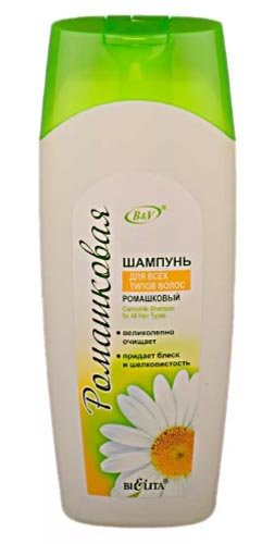Najsvestraniji šampon za sve tipove kose predstavljaju partnerske tvrtke Belita-Vitex. Danas su tvrtke lideri u proizvodnji kozmetike u zemlji. Osim toga, proizvodi marke uspješno se isporučuju i prodaju širom svijeta. Kamilica šampon - jedna od osnovnih opcija. Pogodan za sve tipove kose. Proizvođač posebno preporučuje proizvod za plavu kosu. Čisti i vlaži kosu. Kamilica djeluje umirujuće i blagotvorno djeluje na vlasište.