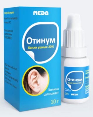 Relativno jeftin terapijski lijek s izraženim protuupalnim učinkom. Aktivni sastojak je holin salicilat. Određeni su za odrasle za liječenje otitis media srednjeg kao i vanjskog uha, uključujući i gljivično podrijetlo. Otinum ima jaka analgetska svojstva. Tijekom prvih minuta nakon primjene primijećeno je smanjenje bolnih grčeva.