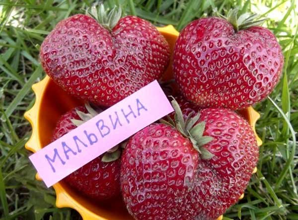 Jedna od najpopularnijih kasnih sorti je Malvina. Odlikuje se velikim plodovima (do 45 g) s izraženim slatkim okusom i visokim sadržajem šećera. Sorta je uzgojena nedavno - u Njemačkoj 2010. godine. Na početku zrenja bobica ima lijepu grimiznu boju, a kraj - duboko burgundac. Meso je slatko srednje gustoće. Jagoda "Malvina" ne podliježe negativnom utjecaju sunca i dobro podnosi kišno vrijeme. Razdoblje plodonošenja pada krajem lipnja i početkom srpnja, kada su sve rane sorte već izblijedjele.