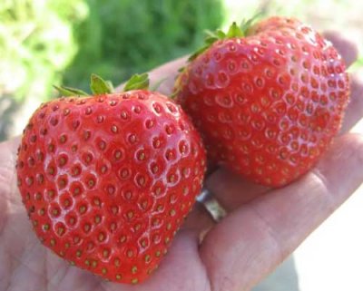 Ova sorta jagoda, porijeklom iz Italije, zaslužila je mnoge odlične ocjene vrtlara. To je mješavina popularnog Chandlera i marmelade. U izgledu bobice konusno blago spljošten oblik narančasto-crvene boje. Sorte jagoda vrlo lijepo sjaje na suncu. Važna značajka "Arosa" - svojstva okusa. Slatka pulpa se dobro slaže s notama vina. Na otvorenom tlu, plodonosno počinje sredinom lipnja. Prosječna težina je 30 g, ali se često nalaze i veće bobice - do 45 g.