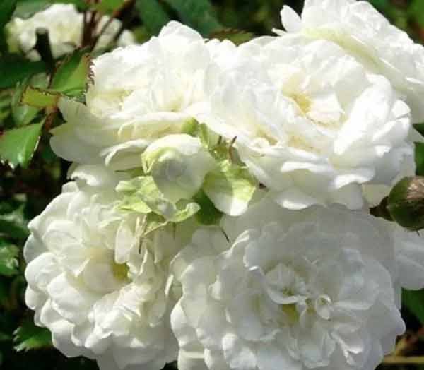 Sorta "Alba" odnosi se na oblik naboranih ruža. Oni su srednje visine i prilično kompaktni u veličini grmova. Terry cvijeće promjera 8 cm emitiraju ugodan miris mirisa. Rose zasađena u sastavu s drugim cvijećem ili zasebnim grmom. U svakom slučaju, izgleda sjajno. Pupoljci imaju bijelu nijansu, ali kad izgore, mogu postati kremasti. Još jedna značajka su listovi. Imaju oblik badema, glatku teksturu i tamno zelenu boju.