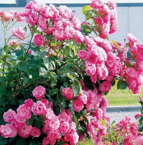 - penjanje Ruže su izvrsne za uređenje vrta. Njihova važna značajka je proklijavanje stabljika, koje često trebaju podršku. Minijaturni cvjetovi prikupljeni su u malim cvatovima i prikazani su u svijetlim bojama. Cvatnja počinje u lipnju i traje do prve hladnoće. Podijeljeni su na male i velike cvjetove.