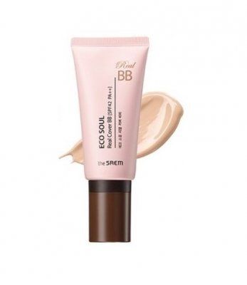 Još jedna dobra korejska BB krema, koja je također privukla ruske kupce. Njegova gusta svilenkasta tekstura zahtijeva posebno osjetljivo rukovanje. Nanesite Eco Soul Real Cover od The Saem spužvom ili četkom, ravnomjerno ga razmažite na očišćenu kožu.
