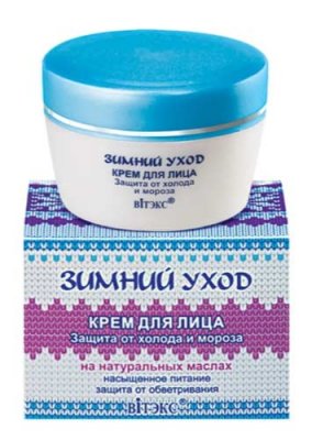 Izvrstan izbor za zimsku njegu kože nudi bjeloruski proizvođač proračunske kozmetike "Vitex". Posebna formula štiti od mraza i sprječava vremenske utjecaje. Krema štiti kožu od negativnih učinaka okoliša. Sastav uključuje nekoliko prirodnih ulja: jojoba, pšenične klice, shea, vazelin.Oni tvore poseban film na površini epidermisa, koji aktivno popravlja oštećenja uzrokovana mrazom i vjetrom. Glavna komponenta kreme je voda. Odmah nakon uporabe vidljiv je snažan učinak omekšavanja.