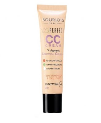 CC-krema poznatog europskog brenda Bourjois pravi je ponos francuskih kozmetologa. Inovativna formula s tri korektivna pigmenta i bez ulja osigurava ultra laganu primjenu s velikim efektom toniranja. Korištenje 123 Perfect pomoći će vam postići doista besprijekornu šminku, a istodobno pružiti brigu za osjetljivu kožu lica i vrata. Ekstrakt bijelog čaja prirodno uništava pigmentaciju, zaglađuje bore, poboljšava elastičnost i potiče regeneraciju. Zaštitni faktor SPF15 štiti kožu od štetnih učinaka ultraljubičastog zračenja.