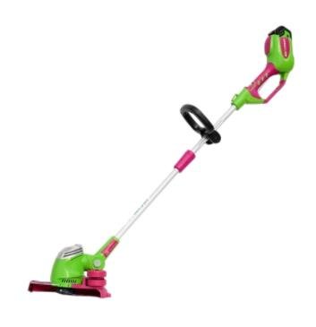 Činjenica da žene također trebaju vrtnu opremu, prva koja je pomislila na Francuze i stvorila za njih trimer baterije u ružičasto-zelenom dizajnu. S tako svijetlim strojem, košenje trave pretvara se iz rutinskih aktivnosti u zabavu. Među ostalim prednostima, proizvođač ističe bešumnost električnih škare u procesu rada, tvrdu osovinu, automatsko produženje linije i 4-pozicijsko podešavanje položaja kalema trimera.