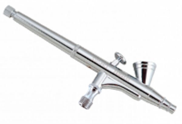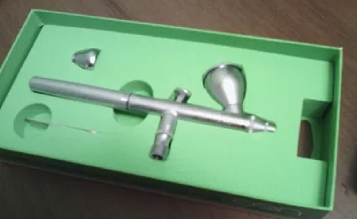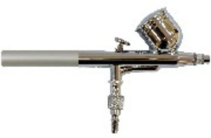 Zračni kist privlači pozornost metalnim kućištem, koje je ergonomično, ne prisiljava na nepotrebne pokrete. Gornji spremnik od 7 ml nalazi se pod nagibom za potpuniji pregled radne površine. U modeliranju se uređaj koristi za crtanje sitnih dijelova. To je olakšano prisutnošću mlaznice promjera 0,2 mm posebnog oblika. Ekonomičan protok zraka 9 l / min. u kombinaciji s maksimalnim tlakom od 1 bar osigurava ravnomjernu sprejnu boju tijekom cijelog radnog vremena. Lagan, prikladan za držanje oblika uređaja, vrlo osjetljiv regulator je također među prednostima koje su navedene u korisničkim pregledima.
