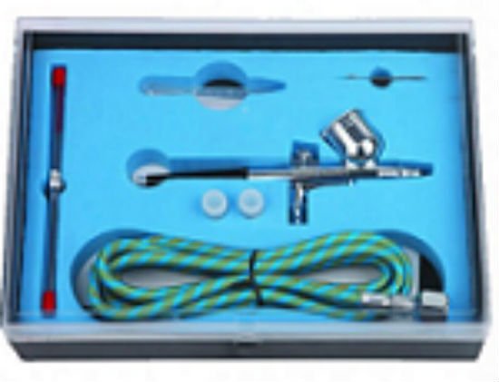 Universal airbrush je potpuno opremljen sa svim potrebnim za nokte. Njegov izbor temelji se na uključivanju u komplet praktično tihog kompresora, optimalnog dužine cijevi za zrak, mrežnog adaptera, odstranjivog stalka, ključa za podešavanje mlaznice od 0,3 mm i mjerne pipete. Dizajn je jednostavan za korištenje, što potvrđuju recenzije onih koji uzimaju samo prve korake u dizajnu noktiju. Bezuljni klipni kompresor ne zahtijeva složeno održavanje, pa je njegov vijek trajanja produljen. Sposobnost izvođenja postupka u 3 načina povećava njegovu učinkovitost zajedno s unutarnjim tipom protoka zraka za miješanje i bojom.Performanse modela su 13 l / min. Mala težina cijelog kompleta čini ga popularnim kada se koristi kod kuće s klijentom.