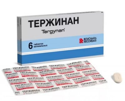 Jedan od najstarijih, najjeftinijih i propisanih lijekova. Ima kombiniranu akciju usmjerenu na uklanjanje patogenih mikroba i gljivica. Glavna tvar je ternidazol, koji brzo i učinkovito liječi kandidozu. Gotovo da nema kontraindikacija za koje je Terzhinan prepoznao velik broj pacijenata.