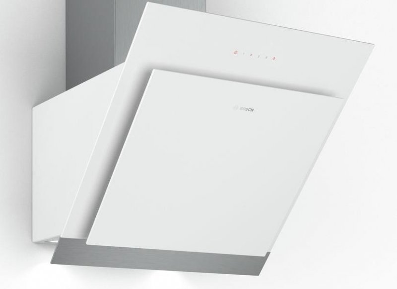 Bosch ispušni sustav s 4 serije s kosim panelom predviđen je za montažu na zid sa standardnom instalacijskom širinom od 60 cm, razvija 3 stupnja snage i podržava intenzivan način rada koji se preporučuje za uključivanje u slučaju paljenja proizvoda na površini. Zbog uspješnog omjera pokazatelja snage i snage, uređaj je praktički tih i pri normalnoj brzini ne proizvodi više od 57 dB.