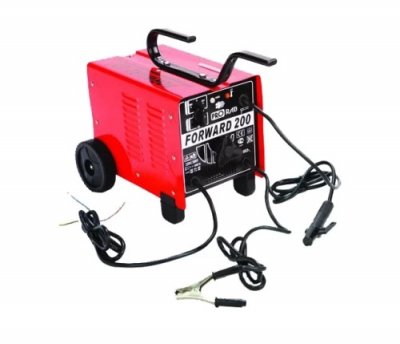 Najpristupačniji transformator za zavarivanje u našem pregledu bio je PRORAB FORWARD 180. Ovaj jednostavan električni uređaj ima sve potrebne dodatke za zavarivanje metala. Zajedno sa zavarivačem, komplet sadrži štit sa svjetlosnim filterom, električne kablove, držač, štipaljku, metalnu četku i separator šljake.Model je sposoban za ručno zavarivanje pomoću celuloznih i rutilnih elektroda debljine 2-4 mm. Veličina struje zavarivanja je regulirana u rasponu od 60-180 A.