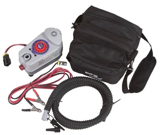 Ova kompaktna električna pumpa-kompresor može automatski pumpati čamac na napuhavanje od PVC-a duljine do tri metra. Dolazi u praktičnoj vodootpornoj torbi za nošenje s remenom. Osim same pumpe, u njoj ćete naći set adaptera za ventile različitih promjera, kabel za spajanje na priključke akumulatora u automobilu, kao i crijevo s uklonjivim vrhovima. Model ima kapacitet od 160 litara u minuti i može osigurati tlak zraka do 1000 mbar.
