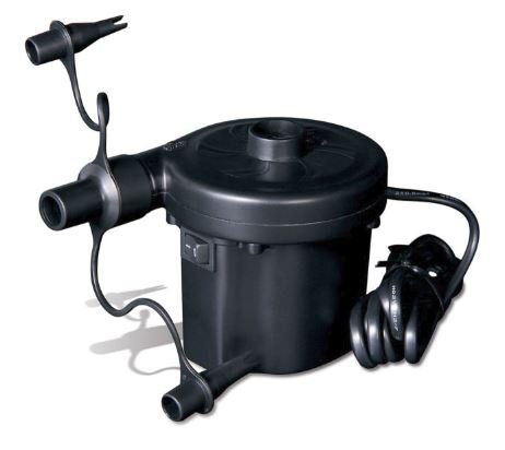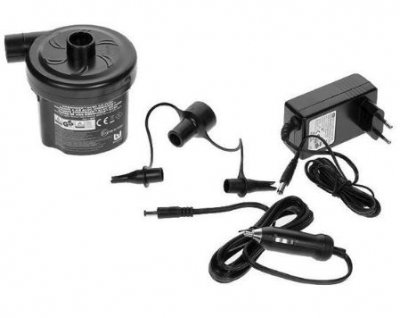 Univerzalna električna pumpa koja se može koristiti za napuhavanje plovila od PVC-a, madraca, bazena, lopti i igračaka. Paket uključuje tri mlaznice, tako da je model pogodan za većinu ventila.Unatoč maloj težini pumpe (samo 800 grama), njezina je snaga dovoljna da napunim čak i velike brodove. Uređaj napaja 220 volti.