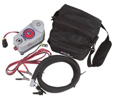 Minijaturna električna pumpa-kompresor, pogonjena upaljačem za cigarete. Sposoban i da pumpa i otpuhne brodove iz PVC-a i drugih proizvoda na napuhavanje. Osim samog uređaja, u kutiji se nalaze i tri mlaznice za ventile različitih promjera (18 mm, 8 mm i 5 mm). Unatoč niskoj cijeni, kompresor je opremljen dovoljno dugačkim kabelom (180 cm).