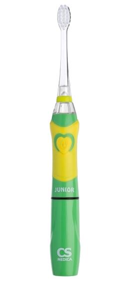 Električna četkica za zube CS Medica CS-562 Junior - predstavnik skupine zvučnih uređaja. Pokreće ih baterija. Model je prikazan u žutim i zelenim bojama. Zahvaljujući svijetlom dizajnu uređaja, LED rasvjeti i povremenim vibracijama, čišćenje zubi za djecu se iz rutinske procedure pretvara u pravu avanturu.
