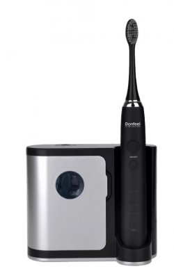 Ova četka zadovoljit će korisnika s proširenim skupom. U standardnom setu, vlasnik prima uređaj s tri različite mlaznice, koje su pojedinačno označene. Tako možete kupiti jedan uređaj i koristiti ga s cijelom obitelji. Četka ima četiri načina rada: standardno i nježno čišćenje, masaža, izbjeljivanje. Maksimalna brzina, prema proizvođaču, je 2,8 milijuna pulsacija u minuti, što je, vidite, impresivno. Kao što korisnici pišu u svojim recenzijama, osjećaj da uopće nisu čistili zube. Donfeel HSD-010 čini ga glatkim i čistim.