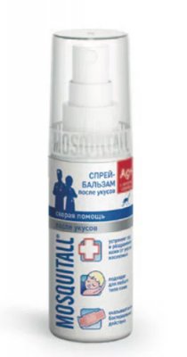 Mosquitall je možda najpopularniji proizvođač repelenata za insekte. U svojoj liniji predstavljen sprej-balzam, savršeno ublažava svrbež i iritaciju nakon uboda komaraca. Njegova je značajka trenutna akcija. Osjećaji nelagode na koži prolaze odmah nakon nanošenja. Proizvod se lako nanosi zbog tekuće konzistencije. Zbog praktičnosti, cijev je opremljena raspršivačem. Jedinstvena formula sadrži ione srebra koji potiču obnovu oštećenih stanica. Pogodan za odrasle osobe bilo kojeg tipa kože, čak i skloniji manifestaciji jakih reakcija nakon uboda insekata.