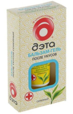 Balsam-gel domaće proizvodnje "Family" brzo umiruje kožu nakon uboda komaraca i drugih insekata. Uklanja neugodu u prosjeku nakon 5 minuta. Aktivni sastojci su prirodni biljni ekstrakti. Zeleni čaj, krastavac, berhavija zajedno imaju snažan protuupalni učinak, olakšavaju oticanje i dobro umiruju kožu. Sudeći po recenzijama, nakon primjene "DETA AQUA", mjesto ugriza se više ne svrbi. Još jedna značajka alata je njegova niska cijena.