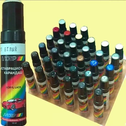 Posebno popularni u našoj zemlji bili su četke za popravke koje su se koristile za nanošenje manjih i manjih nedostataka.Postoji veliki izbor nijansi, a otpornost na sunčevu svjetlost jamči najbolji rezultat. MOTIP aerosolne limenke su također popularne - u pravilu se koriste za bojanje odbojnika, čeljusti i kotača. Unatoč višoj cijeni, vlasnici obično odabiru najbolju kvalitetu za svoj automobil.
