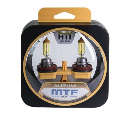 MTF svjetiljke Aurum H11 dokazale su se u teškim vremenskim uvjetima.Zahvaljujući dvoslojnom optičkom omotaču, emitira zlatno-žutu svjetlosnu zraku. Temperatura boje je 3000K. U kišnom vremenu ili maglovitoj magli daje kontrastnu percepciju prometne situacije. Za proizvodnju optike, proizvođač je koristio posebnu čašu koja apsorbira većinu ultraljubičastih zraka. Unatoč velikoj snazi (55 W) svjetiljke su sigurne za plastične elemente svjetiljki.