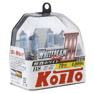 Japanski proizvođač uspio je stvoriti halogenu žarulju s nizom pozitivnih svojstava. KOITO WHITEBEAM III H8 kombinira prirodnu žućkastu svjetlost s visokom svjetlinom emitiranog snopa. Optika zadovoljava zahtjeve svih međunarodnih standarda, kako u pogledu intenziteta svjetlosti tako i u pogledu potrošnje energije. U usporedbi s konvencionalnom žaruljom sa žarnom niti, KOITO halogen s snagom od 35W može se usporediti po jačini s konkurentima od 70 W. Stručnjaci kažu da je povećanje svjetlosnog toka, blizu standardnog ksenona.