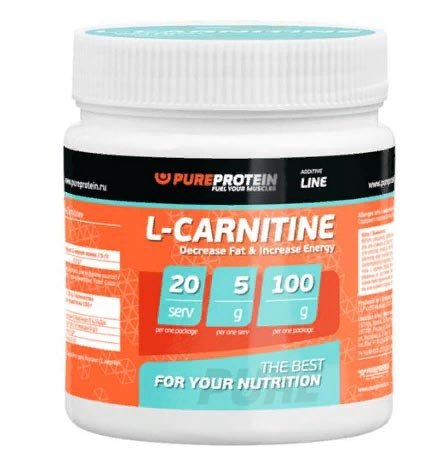 Levokarnitin u prahu ruskog proizvođača PureProtein sadrži 100 g aktivne tvari u pakiranju. Prije uporabe, prašak treba otopiti u vodi ili drugoj tekućini. Ovaj oblik oslobađanja možda nije prikladan za svakoga, a određeni broj korisnika preferira tekućinu ili kapsule za oralnu primjenu.