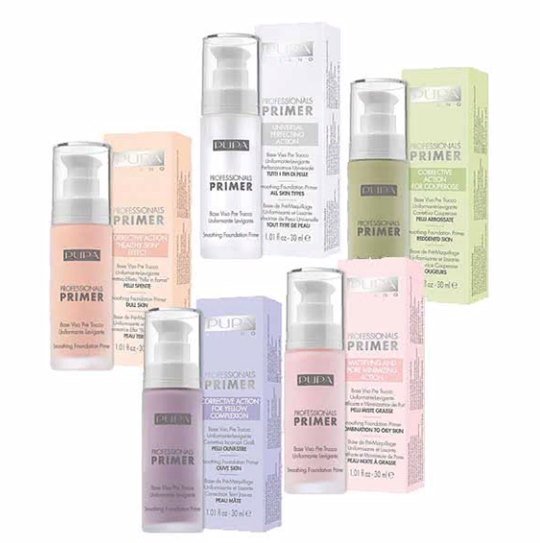 Dostupan u pet boja: ružičasto-mat i zateže pore; bež - licu daje zdravi sjaj; zeleno - učinkovito maskira crvenilo; ljubičasta - služi za korekciju kože tamnih nijansi; prozirna - pogodna za sve tipove kože. Primer Pupa Smoothing Foundation je u vrhunskim profesionalnim alatima, dosljedno zauzimajući visoke položaje u ljestvici šminke.