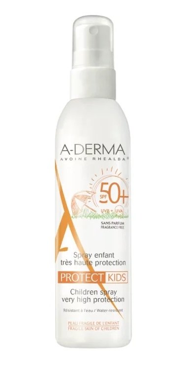 Još jedan predstavnik francuske kozmetičke industrije je krema za sunčanje u obliku spreja marke A-DERMA, autoritativnog lidera u proizvodnji ljekovite kozmetike na bazi biljaka. Lijek je dio linije Protect, dizajniran za njegu svih vrsta dermisa s posebnim potrebama i za zaštitu od sunca osjetljivu kožu djece od 3 godine. Kao iu drugim proizvodima tvrtke, glavna aktivna komponenta spreja je ekstrakt zrna Realba. To je patentirani biološki aktivni kompleks koji ima umirujuće, aseptično i regenerirajuće djelovanje na kožu, a također jača staničnu barijeru kako bi se prirodno oduprla štetnom zračenju.