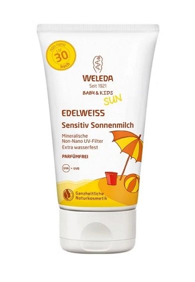 Unatoč činjenici da se krema za sunčanje za djecu i bebe iz Welede nedavno pojavila u katalozima online trgovina prirodne kozmetike, brzo je stekla popularnost i postala jedna od najčešće traženih sredstava od opeklina (prema podacima internetskih tražilica). Ovaj proizvod otporan na vlagu ne sadrži kemijski aktivne filtre. Djelovanje kreme temelji se na uporabi mineralnih reflektirajućih čestica, a vodeća komponenta je ekstrakt planinskog edelweissa - ljekovite biljke koja raste u Švicarskoj i posjeduje jake antioksidacijske osobine.