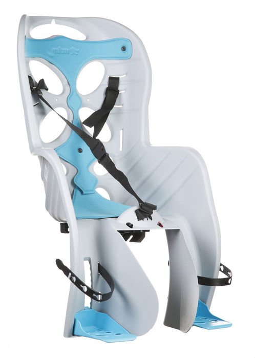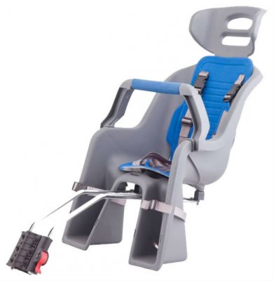 Ovo sjedalo za bicikle lako se postavlja na oslonac sjedala i učinkovito je za ceste s premazom različitih vrsta. S pravom vještinom, i muškarac i žena lako se s njom mogu nositi. S opterećenjem do 22 kg, putnik je pouzdano zaštićen visokim naslonom lijepog oblika s ventilacijskim otvorima, velikim naslonima za ruke i sigurnosnom ogradom. Također su uključene trake od 3 točke.