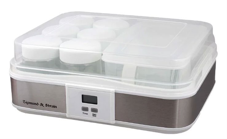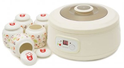 Ovaj kuhinjski uređaj postao je stalni pomagač domaćicama, koji preferiraju domaći jogurt bez konzervansa, boja, umjetnih okusa. Na posebnoj ploči s grijačem postavljaju se četiri staklene čaše od po 180 ml. Prednost konstrukcije je u tome što postolje nije ujednačeno, već s utorima, čija je širina oko promjera spremnika koji se ugrađuju. Visina panela omogućuje sigurno pričvršćivanje posude i ravnomjerno zagrijavanje njenog sadržaja. Plastična kutija opremljena je prozirnim zajedničkim poklopcem, kroz koji bez otvaranja možete promatrati "sazrijevanje" delikatese.