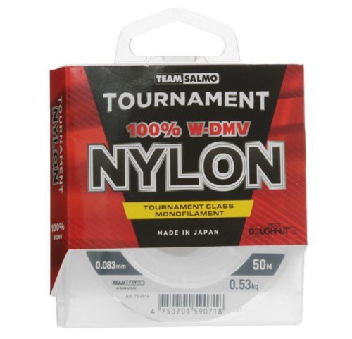 Visokokvalitetni najlon W-DMV postao je temelj za mono tkaninu Salmo turnira. Zahvaljujući ovom sintetičkom vlaknu, proizvođač je mogao povećati osjetljivost, otpornost na trošenje i čvrstoću na licu mjesta. Uz ove važne osobine, ribolov je bio mekan i podatan. Nizak omjer rastezanja je odličan s elastičnošću. Takva ravnoteža omogućuje ispumpavanje velikih riba, kako u vrijeme otvorenih voda tako i tijekom ribolova na ledu. Trajnost najlonske niti održava se, unatoč različitim vremenskim utjecajima. Ni sunčeve zrake ni padovi temperature ne smanjuju snagu i pouzdanost. Transparentnost i bezbojnost čine ovaj ribolovni pribor nevidljivim predstavnicima ihtiofaune.