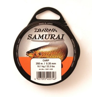 Ljubitelji ribolova na šarane otkrili su jeftinu, ali vrlo vrijednu japansku liniju ribolova DAIWA Samurai. Glavna prednost ovog proizvoda je visoka vlačna čvrstoća. Na primjer, možete dobiti trofejne ribe težine više od 5 kg s monofilamentom 0,25 mm. Stručnjaci se usredotočuju na održavanje snage linije da se slomi. Ovisno o karakteristikama spremnika, treba odabrati boju monofilamenta, a proizvođač nudi domaćim potrošačima nekoliko popularnih boja.