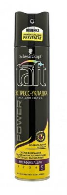Ovaj lak je jedan od favorita među vlasnicima ljudskih bića. Svatko zna da uredno položen prasak leti u različitim smjerovima kada prvi vjetar udara. Taft brzo i sigurno fiksira kosu, dok im je potpuno nevidljiv, da shvati da je alat prisutan samo zbog odsutnosti prirodnih vibracija. Lak ima ugodan, ne oštar miris, koji brzo nestaje i ne iritira kada se nanosi. Alat je pogodan za sve tipove kose, sadrži hipoalergene komponente i tvari za njegu.