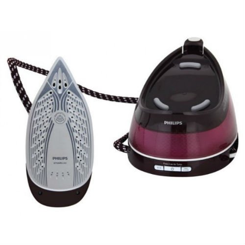 Na prvi pogled, ovaj model tvrtke Philips privlači pozornost svojom kompaktnošću, koja, međutim, ne umanjuje njegovu funkcionalnost. Glačalo s parom generatorom je certificirano, dopušteno je koristiti za glačanje proizvoda od različitih tkanina - od finog šifona do prirodne vune. U tom slučaju, ne treba se bojati da će materijal biti oštećen, jer uređaj ima posebnu tehnologiju OptimalTEMP, koja obavlja automatsku kontrolu temperature. Osim toga, nema opasnosti od paljenja vanjske obloge daske za glačanje ako uređaj ostavite na njemu.