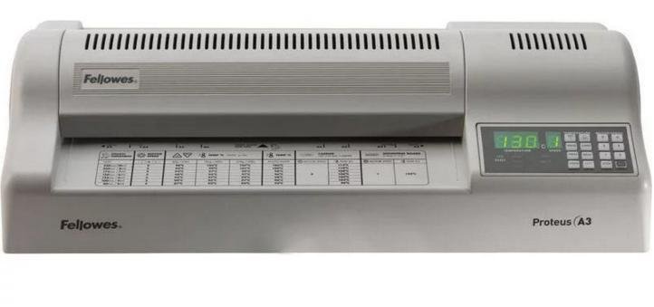 Ako intenzitet korištenja laminatora prelazi 100 listova formata A3 dnevno, profesionalna oprema je neophodna. U svojoj ulozi, savršeno će funkcionirati model “Proteus” američke tvrtke Fellowes, opremljen sa 6 osovina, od kojih se 4 grije s ugrađenim infracrvenim grijačima. Uređaj je pušten u prodaju dugo vremena, prije više od 7 godina i ima mnogo pozitivnih povratnih informacija. Ravnomjerno grijanje i precizne postavke temperature i brzine procesa osiguravaju savršeno laminiranje na debljinu filma od 75 ili 250 mikrona.