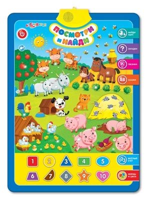 Glavni zadatak proizvoda je razviti zvučnu i vizualnu percepciju. Sudeći prema ocjenama, djeca od 2 godine provode veliku količinu vremena radeći poster. Naučite imena i zvukove objekata, životinja, boja. Uče vizualno opažati informacije, povezujući ih sa zvučnim efektima. Naravno, najprije se morate poigrati s djetetom, ali će tada moći samostalno pronaći rješenje predloženih problema.