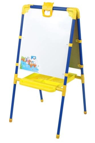 Crtanje je najbolji alat za kreativni razvoj. Naravno, za nastavu se može koristiti jednostavan list papira, ali štafelaj djeci omogućuje da se osjeća kao mladi talenat, jer mu je tako važno da bude “odrasla osoba”. Da, iu smislu pogodnosti, on pobjeđuje. Za crtanje slike možete koristiti oznake i bojice. Operite s posebnom spužvom. Osim toga, može se koristiti kao magnetska ploča za dodavanje brojeva i slova.
