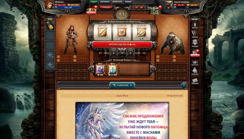 U ovoj igri možete se boriti s više od jednog dosadnog i brzo dosadnog heroja čija klasa obično birate tijekom registracije. Svaki lik ima desetke maski - artefakte koji vam omogućuju da se pretvorite u svakoga. Na primjer, u Boar ili Ghost. Svaki entitet dobiven na ovaj način ima svoje prednosti i mane, tako da možete savršeno eksperimentirati s najboljom Maskom. Ugodan nestandardni pristup programeri u bitkama - "rulet" način. To vam omogućuje da odaberete akciju u borbi samo iz opcija koje nudi igra. Broj opcija ovisi o opremi, vještinama i maskama. No, ako vam se ove opcije ne sviđaju, možete se ponovno kretati kroz rulet za valutu igre.