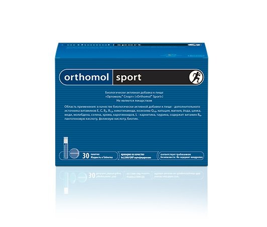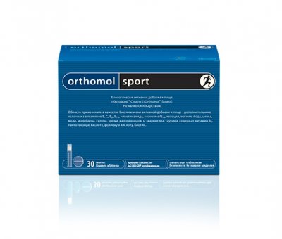 Orthomol Sport (Ortomol Sport) je profesionalni vitaminsko-mineralni kompleks, uključen u prehranu većine sportaša koji sudjeluju na međunarodnim natjecanjima najviše razine. Alat ima kumulativno svojstvo, tako da bi vrijeme prijema trebalo biti dosta dugo. Dostupan u obliku tableta ili boca za piće. Sastav uključuje spojeve kalcija, magnezija i željeza koji doprinose normalnoj funkciji mišića i povećavaju hemoglobin.