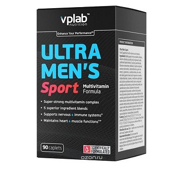 Muški sportski vitaminsko-mineralni kompleks Vplab Ultra Men's Sport Multivitamin Formula sadrži 5 specijaliziranih mješavina. Jedinstvena kombinacija vitamina, minerala, prirodnih biljnih ekstrakata i ljekovitog bilja usmjerena je na stvaranje čovjekove dobrobiti tijekom intenzivnog sportskog treninga, a također dobro podupire njegovo zdravlje tijekom odmora. Izvrsni sastav i prikladan režim (1 kapsula dva puta dnevno) čine kompleks jednim od najtraženijih proizvoda u svom segmentu, a pristupačna cijena dodatni je poticaj za kupnju lijeka.