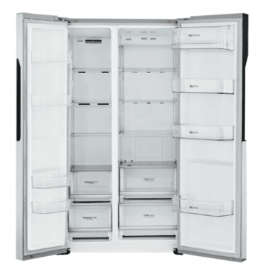 Vrlo čvrst hladnjak - kvalitetna montaža, materijali ugodnog izgleda i dodira. Prisutnost samo jednog kompresora u uređaju više se smatra pozitivnom karakteristikom - potrošnja energije za veliki hladnjak nije vrlo visoka, samo 550 kWh / god (klasa A). Zamrzivač je velik, prostran, zapremine 180 litara. Dimenzije su male za bočni hladnjak (91,2x73,4x178,9 cm)stoga zauzima nešto manje prostora od najpopularnijih modela.