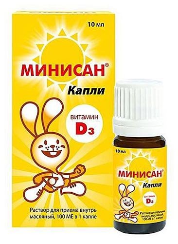Ovo je izvorni lijek koji djeluje kao izvor vitamina DZ, koji je tako neophodan za novorođenčad. Za djecu mlađu od 1 godine, doza je 5 kapi dnevno. Osim toga, ovaj alat s obzirom na povećanje doze, također se može koristiti za odrasle i starije osobe. Odgovori kažu da Minisan ne uzrokuje nuspojave i dobro se apsorbira. Preporučuju ga roditelji koji se suočavaju s negativnim posljedicama uzimanja Aquadetrima.