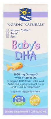 Alat američke marke "Nordic Neutherals" namijenjen je razvoju mozga i vizije kod novorođenčadi i djece prve godine života. Boca od 60 ml nudi 1050 mg Omega-3 DHA iz 100% divljeg arktičkog bakalara s vitaminom D3. Preporučljivo je prihvatiti sredstva nakon konzultacije s pedijatrom koji će na temelju dobi i indikacija uzeti optimalnu dozu.