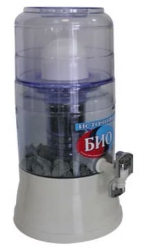 Čistač, koji je popularan među kupcima, ušao je u rejting zbog uspješne kombinacije nekoliko komponenti važnih za potrošače odjednom. To je skromna veličina 31,5x31,5x53 cm dizajna, što vam omogućuje da ga stavite na stalak u većini kutak kuhinje ili hodnika. Mala težina (5,5 kg) također je važna, jer je moguće da ćete ponekad morati pomicati dozator. Kompaktni uređaj opremljen je s 2 spremnika ukupne zapremine 12 l (6 + 6) i odvojivim keramičkim filtrom. Potonji se peru najmanje 1 puta mjesečno kako bi se zadržala izvorna učinkovitost filtriranja. Pročišćavanje, prema povratnim informacijama potrošača, brzo je.