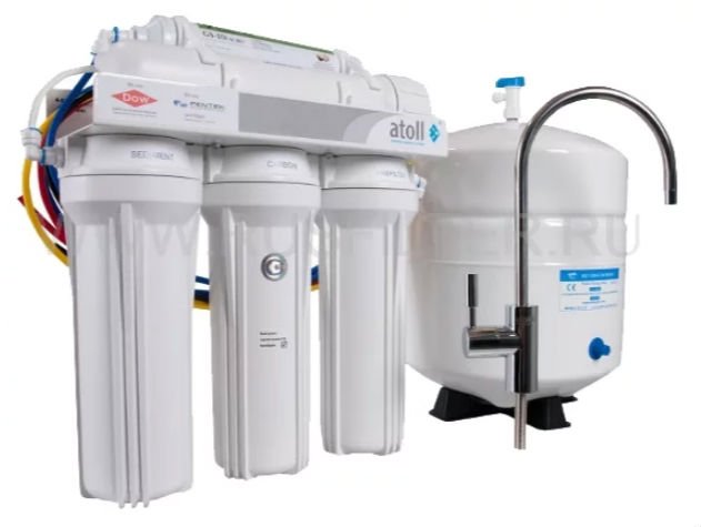 Kristalno stanje tekućine u početku bilo koji stupanj kontaminacije postiže se oslobađanjem mehaničkih nečistoća, klora, teških metala. Glavni element - membrana reverzne osmoze - uklanja na 4. stupnju najmanje štetne sastojke, uključujući bakterije. Čistoća vode dostiže 99,99%, što potvrđuju laboratorijska ispitivanja i mišljenja potrošača. U završnoj fazi pročišćavanja, ugljični post-filter eliminira različite mirise, a ugrađeni mineralizator zasiti tekućinu korisnim komponentama za podešavanje razine pH. Visoki troškovi zamjenjivih spremnika ne čine sustav manje popularnim.