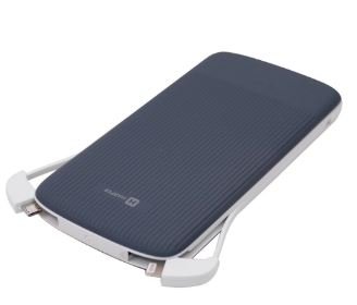 Kineska vanjska baterija opremljena ćelijama za jednostavno spremanje adaptera. Mikro USB, Lightning i USB Type-C kabeli ugrađeni su u tijelo banke i laganim pokretom ruke napuštaju kućište. Ima 10.000 mAh, što je dovoljno za šest ili sedam punjenja za iPhone 5. Tu su i dva USB ulaza, od kojih jedan ima struju od 2 A, a druga 1.5 A.