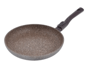 Univerzalna aluminijska tava domaćeg proizvođača. Oblik je okruglog, promjera - 28 cm, ručke su odvojive, komplet sadrži dva dijela - glavni i dodatni. Napravljeni su od bakelita, ne zagrijavaju se. Zahvaljujući izmjenjivom dizajnu ručki, tava se može staviti u pećnicu. Stranice su visoke - 6,5 cm Zahvaljujući izdržljivom keramičkom premazu, dopušteno je strojno pranje. Može se koristiti za indukcijske ploče za kuhanje.