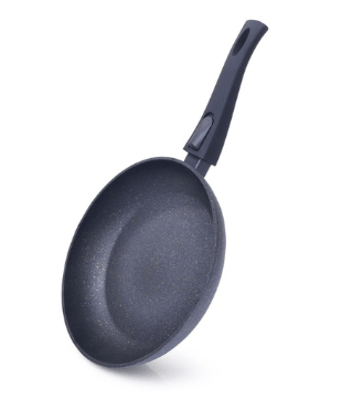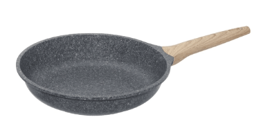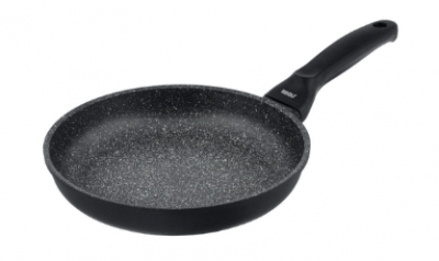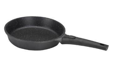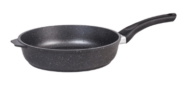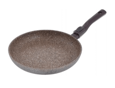 Još jedan uspješan model od lijevanog aluminija. Ima prikladan oblik tave i ručke. Kvaliteta non-stick sloja je dobra - moderna granitna prevlaka potpuno eliminira mogućnost pečenja jela. Duga bakelitna ručka ne zagrijava se, ima površinu koja nije skliska, udobno leži u ruci. Pan dolazi u crnoj i sivoj boji.