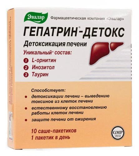 "Hepatrine" je jedinstveni kompleks vitamina B i aminokiselina po atraktivnoj cijeni. L-ornitin, inozitol i taurin, koji su dio pića za detoksikaciju, osiguravaju uklanjanje toksina iz hepatocita, prirodnu obnovu funkcije jetre i zaštitu organa od pretilosti. Lijek ne sadrži GMO, gluten i šećer. BAA ima hepatoprotektivni i detoksikacijski učinak. Glavne prednosti proizvoda su doziranje, učestalost i trajanje tečaja, i to samo 1 vrećica za vrećicu dnevno nakon obroka tijekom 10 dana.